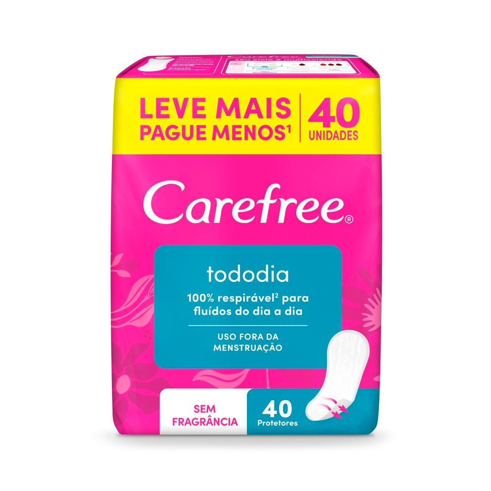 Protetor Diário Carefree Todo Dia Sem Fragrância 40 Unidades Leve Mais Por Menos O Carefree todo dia é o protetor diário sem fragrância, ideal para quando não estamos naqueles dias; feito com micropor
