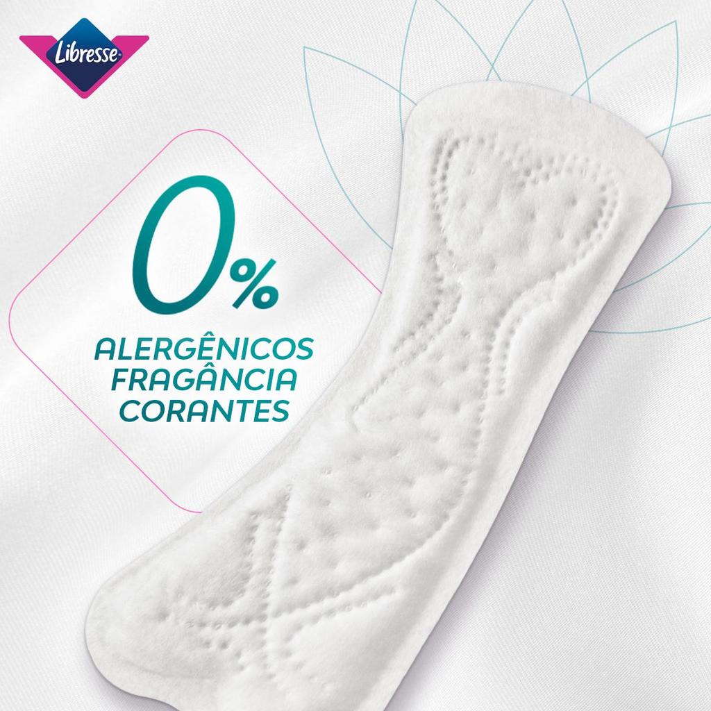 Libresse é uma marca com uma linha completa de produtos para o ciclo menstrual. Acreditamos que o ciclo menstrual é único. Vamos surpreender e transformar a relação com a sua menstruação, oferecendo um lugar seguro sem vazamentos e desconfortos. Nosso protetor diário longo Pure Sensitive é exatamente o que você precisa para um cuidado especial da pele mais sensível e delicada da sua Zona V (que não é apenas sua vagina e sua vulva!). São 0% alergênicos, fragrâncias e corantes, minimizando o risco de alergias, assaduras e irritação da pele. Nossos protetores diários Pure Sensitive oferecem proteção e absorção multifluídos: lidam com sangue, secreções e urina. Possuem tecnologia CurveFit, uma tecnologia com ajuste perfeito para você e para sua calcinha. São mais longos que um protetor regular, ideais para te manter protegida e segura. Sem contar que possuem um tecido respirável, mantendo assim a pele fresca e seca durante todo o dia. Lembre-se de trocá-los 3 vezes ao dia para garantir o máximo conforto. Suas embalagens são individuais para maior praticidade e conveniência. Produto dermatologicamente testado e hipoalergênico. • Tecnologia CurveFit® - Adaptação perfeita ao seu corpo e seus movimentos, garantindo máximo conforto; • Cobertura Extrassuave e Respirável - Macio, permite a circulação do ar. Mantém a pele fresca (sem abafar), seca e saudável; • Longo - 18cm de proteção de sangue, secreções e urina; • Cuidado da pele sensível - Auxilia a prevenir irritações, coceiras e assaduras. São 0% alergênicos, fragrâncias e corantes; • Os componentes são atóxicos e dermatologicamente testados - o melhor para a sua pele sensível íntima. • Produto hipoalergênico.