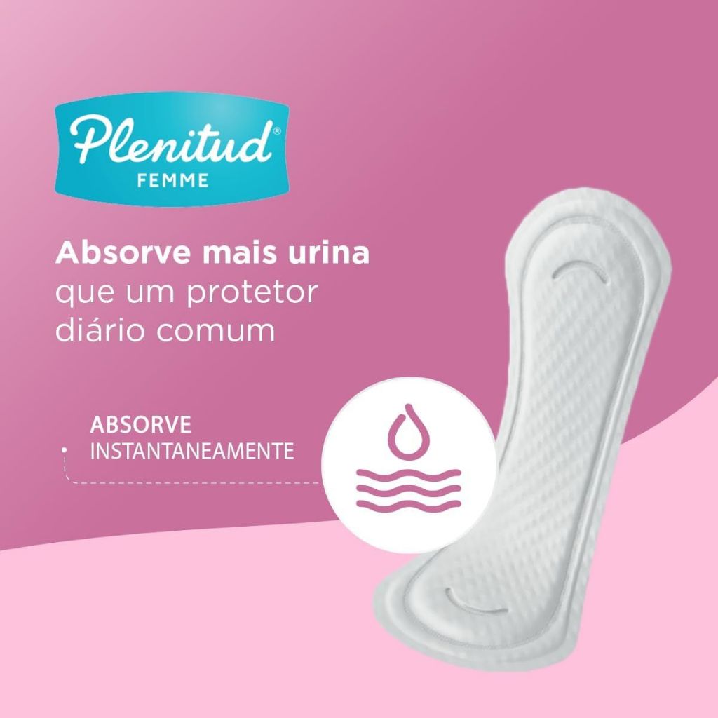Protetor Diário Plenitud Femme Escapes Leves a Moderados - 14 Unidades O Protetor Diário Plenitud Femme foi desenvolvido especialmente para mulheres que necessitam de proteção confiável contra escapes leves a moderados de urina. Com design discreto e conforto superior, ele garante segurança para o dia a dia. Principais Características - Absorção Rápida e Eficiente: Retém o líquido rapidamente, mantendo a pele seca e confortável. - Ajuste Anatômico e Discreto: Design ultrafino que se adapta ao corpo e fica invisível sob a roupa. - Controle Avançado de Odores: Neutraliza odores indesejáveis, proporcionando frescor duradouro. Benefícios - Proteção segura contra escapes de urina leves a moderados. - Sensação de frescor e bem-estar o dia todo. - Formato anatômico para ajuste perfeito. - Material respirável para maior conforto. Diferenciais do Produto - Indicado para mulheres que buscam proteção extra sem abrir mão da discrição. - Tecnologia avançada para absorção e neutralização de odores. - Embalagem prática e discreta para transporte fácil. Especificações Técnicas - Peso: Aproximadamente 250g - Quantidade: 14 unidades por embalagem Instruções de Uso - Retire o protetor da embalagem. - Remova a fita adesiva e fixe na roupa íntima. - Troque conforme necessário para manter a higiene e o conforto. - Descarte corretamente após o uso. Avisos e Precauções - Não descartar no vaso sanitário. - Trocar regularmente para evitar odores e manter a higiene. - Em caso de irritação, suspenda o uso e consulte um profissional de saúde. O que está incluso? - 1 embalagem com 14 protetores diários Plenitud Femme. ---- Dúvidas Frequentes ---- Os produtos são originais? Sim. Todos os nossos produtos são originais. Emitem nota fiscal? Sim. Emitimos nota fiscal para todos os pedidos.