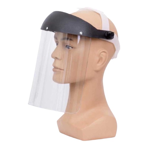 Protetor facial composto de um suporte de material plástico rígido preto, que cobre a parte frontal do crânio do usuário e se estende até a parte lateral da cabeça, e um escudo de material plástico (policarbonato) incolor, com cerca de 230 mm de largura e 155 mm de altura, preso ao suporte preto por meio de três pinos plásticos. VANTAGENS: - Ideal para lidar com o público. - É lavável. - Proteção facial. - As extremidades do suporte preto são fixadas na carneira e coroa de material plástico branco por meio de dois parafusos plásticos. - O tamanho da carneira é regulável através de ajustes simples. - A parte frontal da carneira é recoberta com uma espuma para absorção de suor. APLICAÇÕES: - Ideal para usar em hospitais, clínicas, supermercados e indústrias. Evita o contato direto.