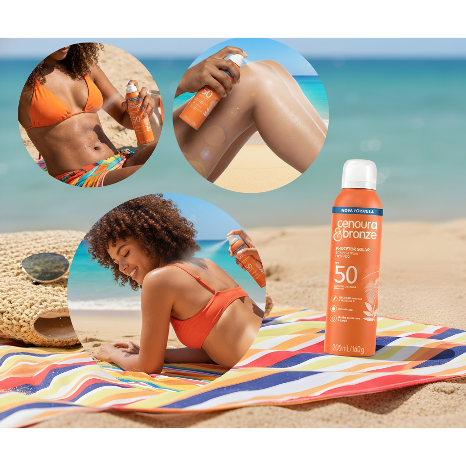 Protetor Solar Aerossol Cenoura e Bronze FPS 50 200ml - Envio Imediato