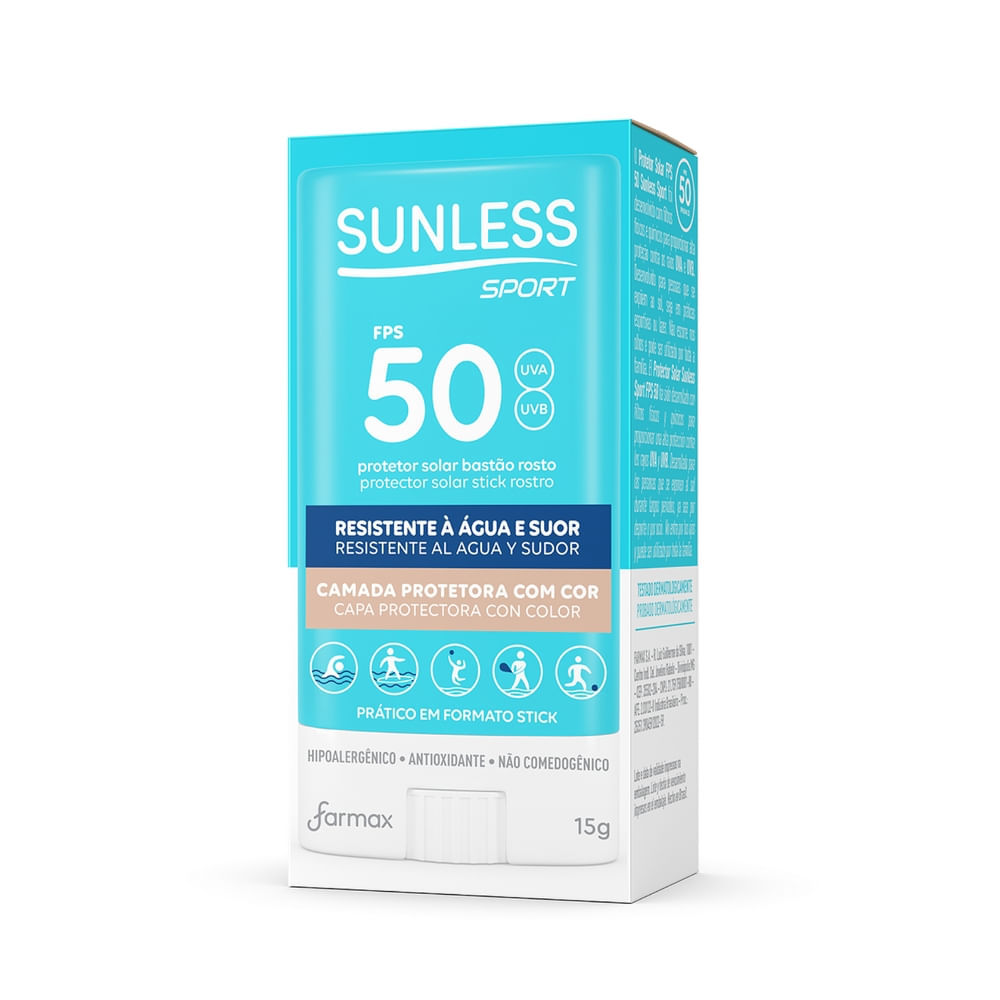 Protetor Solar Bastão Rosto Sunless Sport FPS 50 Camada Protetora com Cor 15g