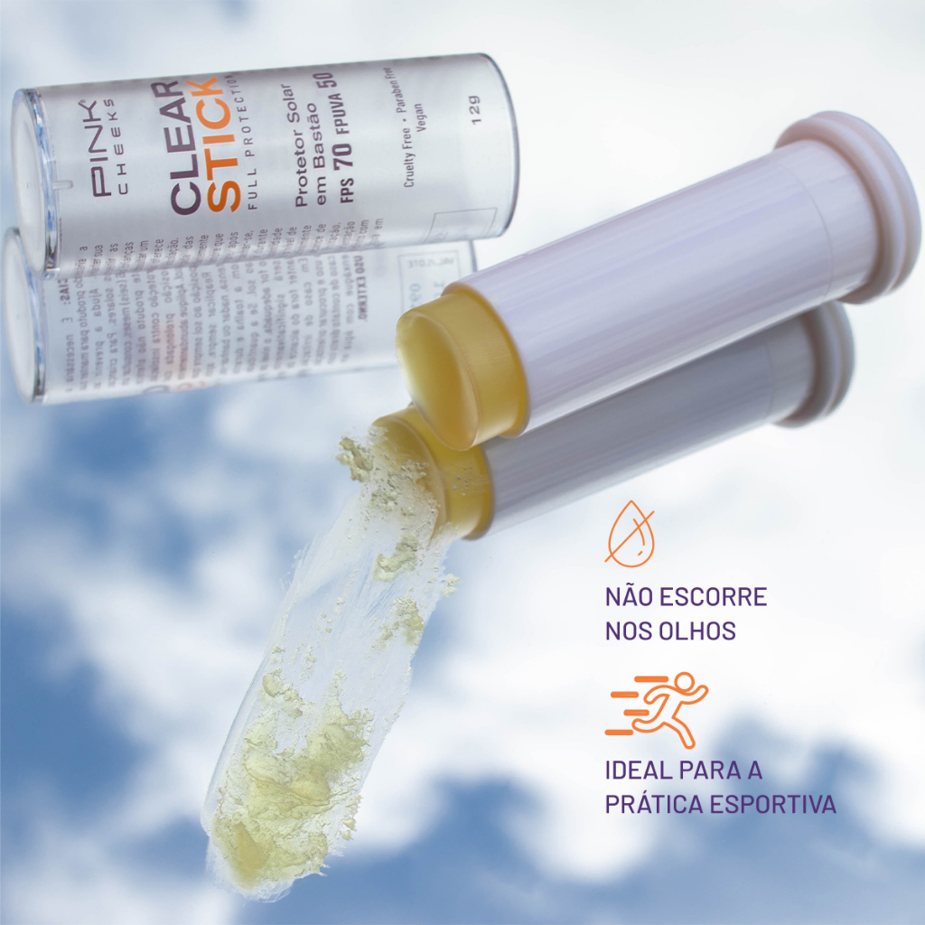 Protetor Solar Clear Stick TRANSPARENTE FPS 70 PINK CHEEKS Resistente ao Suor