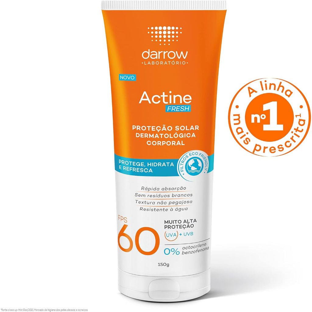 Protetor Solar Corporal Actine Fresh FPS 60 – 150g O Protetor Solar Corporal Actine Fresh FPS 60 foi desenvolvido especialmente para oferecer alta proteção solar com uma sensação refrescante e acabamento seco. Com tecnologia que controla a oleosidade e o suor, é ideal para quem busca conforto durante a exposição solar prolongada, mesmo em dias quentes. Principais Características • Alta proteção FPS 60 com amplo espectro UVA/UVB Garante proteção eficaz contra os danos solares, ajudando a prevenir o envelhecimento precoce e queimaduras causadas pelo sol. • Sensação de frescor imediato Com fórmula refrescante, proporciona alívio e conforto durante e após a aplicação, ideal para uso diário e em climas quentes. • Toque seco e controle da oleosidade Textura leve, rápida absorção e acabamento não pegajoso, promovendo controle do brilho e da transpiração da pele. Benefícios Proteção solar muito alta para o corpo Ajuda a prevenir manchas e sinais de fotoenvelhecimento Controla o suor e a oleosidade da pele Ideal para uso diário ou prática de esportes ao ar livre Dermatologicamente testado Diferenciais do Produto Sensação Fresh, proporcionando conforto térmico Fórmula oil-free com controle de brilho Alta resistência à água e ao suor Indicado para todos os tipos de pele, inclusive as mais oleosas Especificações Técnicas Peso: 150g Instruções de Uso Aplique uma camada generosa sobre a pele seca, antes da exposição ao sol. Reaplique a cada 2 horas, ou após sudorese intensa, nadar ou secar-se com toalha. Uso diário recomendado para manutenção da proteção. Avisos e Precauções Uso externo. Em caso de irritação, suspenda o uso e consulte um dermatologista. Evite contato com os olhos. Não aplicar sobre a pele lesionada ou irritada. Mantenha fora do alcance de crianças. O que está incluso? 01 Protetor Solar Corporal Actine Fresh FPS 60 – 150g ---- DÚVIDAS FREQUENTES ---- Os produtos são originais? Sim. Todos os nossos produtos são originais. Emitem nota fiscal? Sim. Emitimos nota fiscal para todos os pedidos.