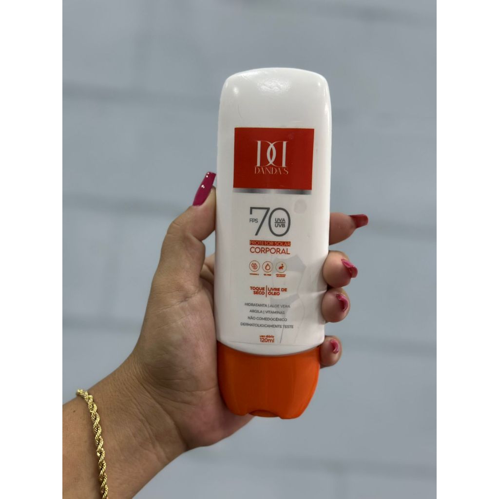 Protetor Solar DANDAS 70 FPS 120 ML No cenário dinâmico dos cuidados com a pele, Protetor Solar DANDAS se destaca como um verdadeiro guardião contra os danos causados pelo sol. Com um poderoso FPS 70 e uma fórmula resistente à água, este protetor solar oferece uma série de benefícios que garantem não apenas proteção, mas também cuidado e conforto para sua pele: 1. *Proteção Avançada contra Raios UV*: O FPS 70 do Protetor Solar DANDAS proporciona uma defesa robusta contra os raios UVA e UVB, ajudando a prevenir queimaduras solares, envelhecimento precoce da pele e outros danos causados pelo sol. 2. *Resistência à Água e ao Suor*: Sua fórmula é especialmente desenvolvida para ser resistente à água e ao suor, garantindo uma proteção eficaz mesmo durante atividades ao ar livre e em ambientes úmidos. 3. *Hidratação Intensa*: Enriquecido com ingredientes hidratantes como aloe vera e glicerina, Protetor Solar DANDAS mantém a pele nutrida e hidratada, prevenindo ressecamento e deixando-a suave ao toque. 4. *Ação Antioxidante*: Contendo vitamina E, um poderoso antioxidante, Protetor Solar DANDAS ajuda a neutralizar os radicais livres, contribuindo para a saúde e vitalidade da pele a longo prazo. 5. *Textura Leve e Não Oleosa*: Sua textura leve e de rápida absorção permite uma aplicação suave e sem deixar a pele oleosa, proporcionando conforto imediato e uma sensação agradável durante todo o dia. 6. *Dermatologicamente Testado e Seguro para Todos os Tipos de Pele*: Protetor Solar DANDAS é dermatologicamente testado e formulado para ser seguro para todos os tipos de pele, incluindo peles sensíveis, garantindo uma proteção suave e eficaz para toda a família. 7. *Revitalização da Pele*: Além de proteger , o Protetor Solar DANDAS revitaliza a pele, deixando-a com uma aparência radiante e saudável, mesmo após exposição prolongada ao sol. Com o Protetor Solar DANDAS, você não apenas se protege dos raios solares prejudiciais, mas também cuida da saúde e beleza da sua pele, permitindo que você aproveite ao máximo seus momentos ao ar livre com confiança e tranquilidade. Escolha Protetor Solar DANDAS e sinta a diferença em cada aplicação.
