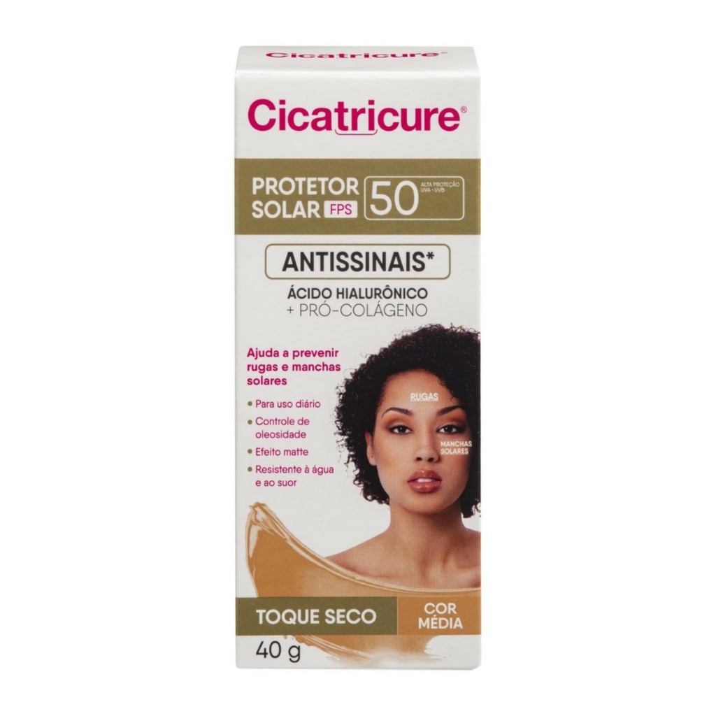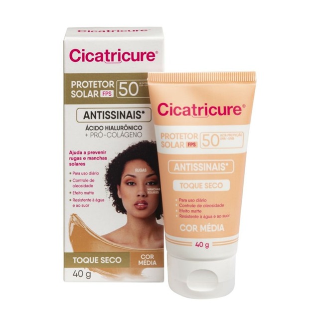 | Protetor Solar Facial Cicatricure Antissinais FPS 50 Cor Média 40g este produto | R$ 65,49 | 25% | 5.0/5 | — |