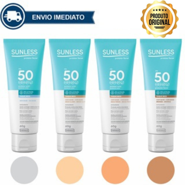 Protetor Solar Facial com Base Toque Seco FPS 50 Alta Proteção Efeito Natural Sunless Envio Imediato