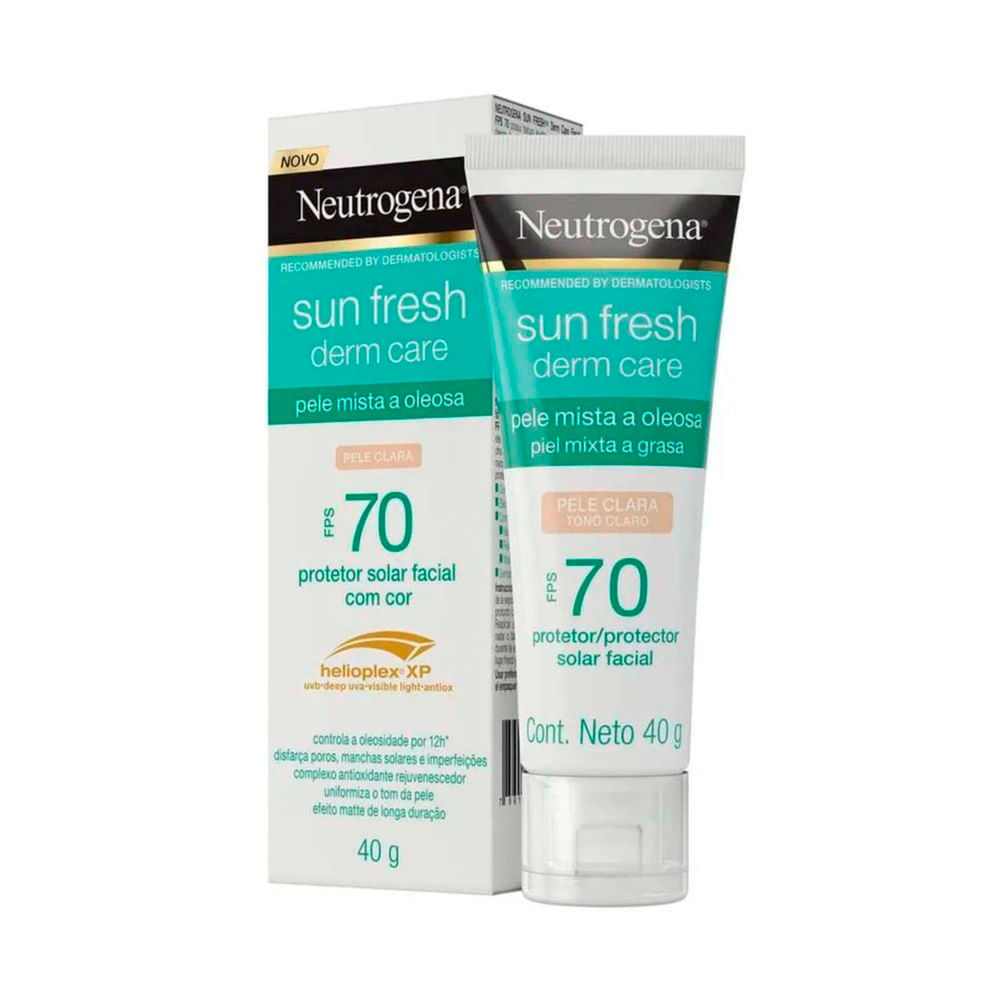 PROTETOR SOLAR FACIAL NEUTROGENA SUN FRESH DERM CARE FPS 70 PELE CLARA Neutrogena Sun Fresh Derm Care Facial FPS 70 possui textura levinha e sequinha que não derrete. A excluisva tecnologia HELIOPLEXX