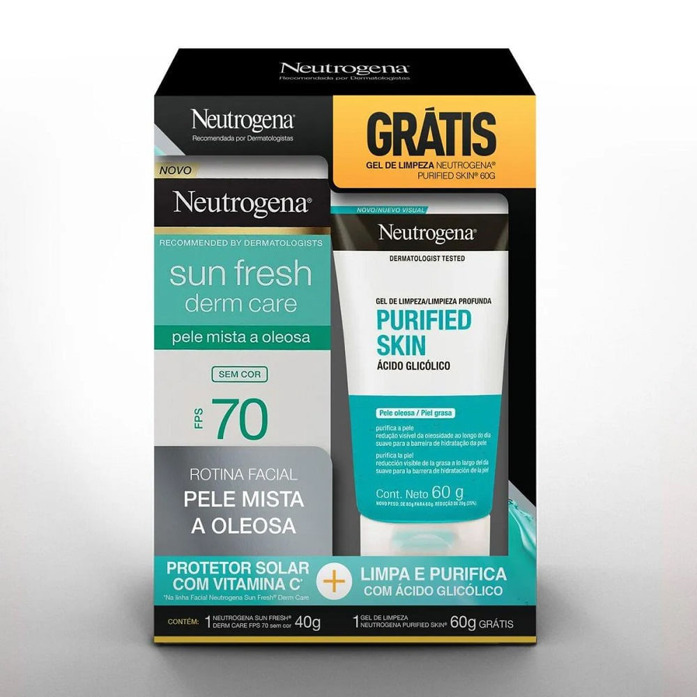 Kit Protetor Solar Facial Neutrogena Sun Fresh FPS 70 40g + Gel de Limpeza Neutrogena Purified Skin 60g Proteção e Limpeza Completa para sua Pele O Kit Protetor Solar Facial Neutrogena Sun Fresh FPS 70 40g + Gel de Limpeza Neutrogena Purified Skin 60g é a combinação perfeita para cuidar da sua pele diariamente. Este kit oferece uma proteção solar avançada e uma limpeza eficaz, garantindo uma pele saudável, protegida e livre de impurezas. Para que serve o Kit Protetor Solar Facial Neutrogena Sun Fresh FPS 70 + Gel de Limpeza Purified Skin? Protetor Solar Facial Neutrogena Sun Fresh FPS 70: Protege a pele contra os danos causados pelos raios UVA e UVB, prevenindo o envelhecimento precoce e o surgimento de manchas. Gel de Limpeza Neutrogena Purified Skin: Limpa profundamente a pele, removendo impurezas, excesso de oleosidade e prevenindo a formação de acne. Como funciona o Kit Protetor Solar Facial Neutrogena Sun Fresh FPS 70 + Gel de Limpeza Purified Skin? O Protetor Solar Facial Neutrogena Sun Fresh FPS 70 oferece uma fórmula leve e de rápida absorção, que protege a pele dos raios solares e ajuda a prevenir o envelhecimento precoce. Já o Gel de Limpeza Neutrogena Purified Skin purifica a pele, eliminando impurezas e controlando a oleosidade, deixando-a limpa e fresca para o dia todo. Como usar o Kit Protetor Solar Facial Neutrogena Sun Fresh FPS 70 + Gel de Limpeza Purified Skin? Gel de Limpeza Neutrogena Purified Skin: Aplique sobre o rosto molhado, massageando suavemente em movimentos circulares. Enxágue abundantemente. Use diariamente, de manhã e à noite. Protetor Solar Facial Neutrogena Sun Fresh FPS 70: Após a limpeza da pele, aplique uma camada generosa no rosto e no pescoço, 15 minutos antes da exposição ao sol. Reaplique a cada 2 horas ou após nadar, secar-se com toalha, ou em caso de transpiração excessiva. Contraindicações e Precauções Uso externo. Evite contato com os olhos. Em caso de contato, enxágue imediatamente com água em abundância. Suspender o uso em caso de irritação e procurar orientação médica. Mantenha fora do alcance de crianças. Conserve em local fresco e seco, longe da luz solar direta. Reações Adversas Embora raras, podem ocorrer reações alérgicas como vermelhidão, coceira ou irritação na pele. Caso observe qualquer uma dessas reações, suspenda o uso e consulte um dermatologista. Armazenamento Armazene os produtos em local seco e fresco, ao abrigo da luz solar direta. Não exponha a temperaturas extremas.