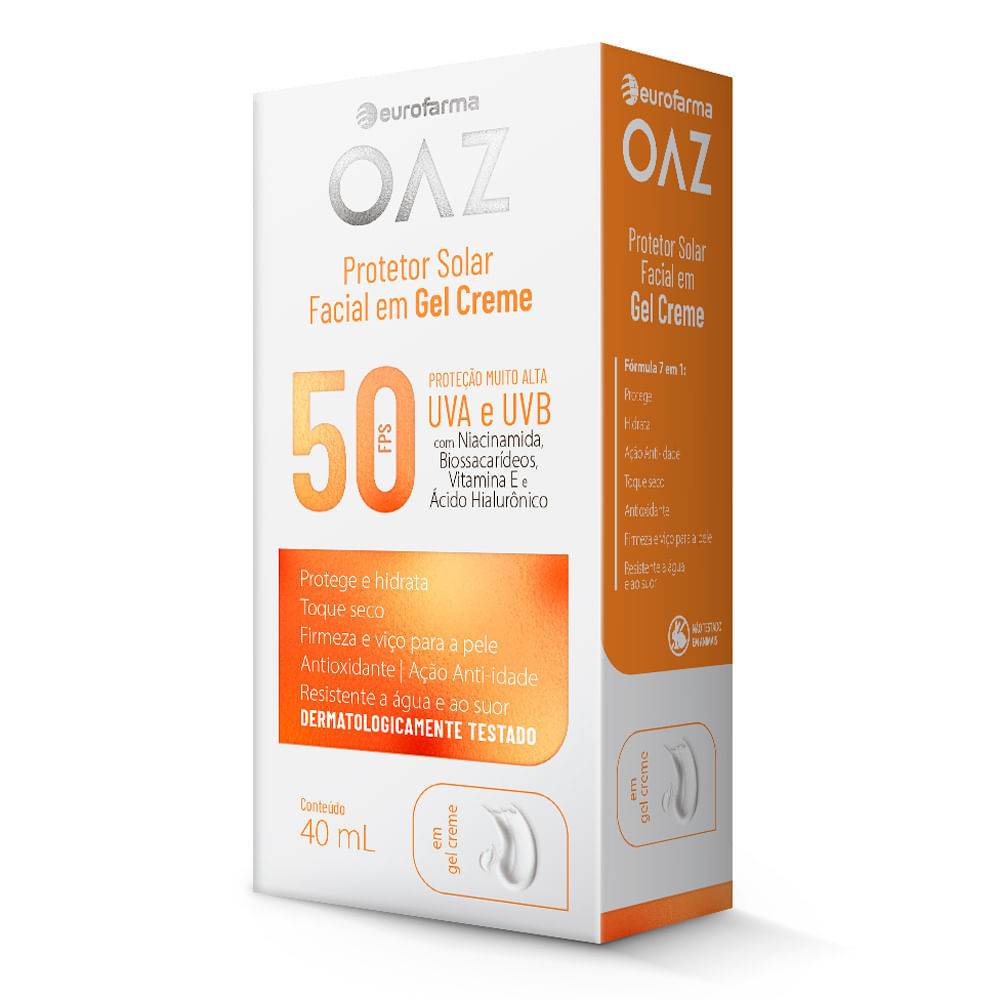 | Protetor Solar Facial OAZ Eurofarma FPS 50 Gel Creme 40ml este produto | R$ 41,99 | — | 5.0/5 | — |