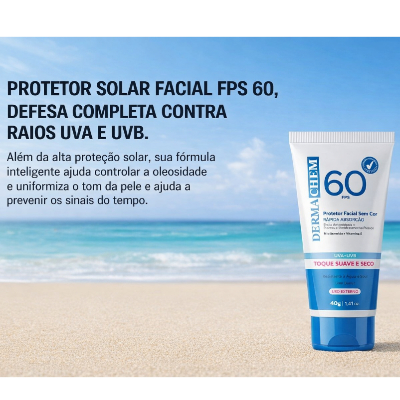 PROTETOR SOLAR FATOR 60 + HIDRATANTE FACIAL PRIMER ANTICRAQUELAMENTO MAKE UP DERMACHEM