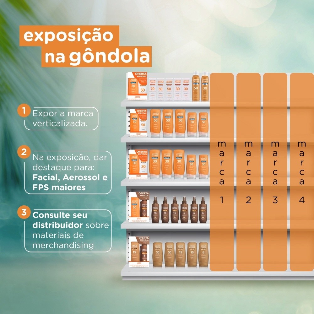 O Protetor Solar Cenoura e Bronze 30 FPS - Preço Especial maximiza a proteção na sua pele, criando uma camada contra o sol onde for aplicado. Com tecnologia inovadora, ele também preserva o colágeno natural da pele, minimizando os danos mais profundos. Sua fórmula, resistente à água, contém ativos de Cenoura e Vitaminas E, que previnem o envelhecimento da pele. Produto testado dermatologicamente.