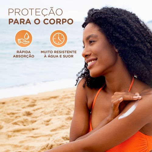 Com ativos de cenoura e vitamina E, o Protetor Solar Cenoura e Bronze FPS 50 protege 50 vezes mais do que sem sua aplicação, proporcionando alta proteção contra queimaduras solares. Além de rápida absorção, sua fórmula possui resistência à água/suor e previne contra o envelhecimento precoce, a perda de firmeza e de elasticidade, preservando o colágeno da pele. Testado dermatologicamente, o Protetor Solar Cenoura e Bronze FPS 50 protege as camadas mais profundas da pele e tem ação antioxidante, evitando vermelhidão, ardência e manchas causadas pela exposição solar.