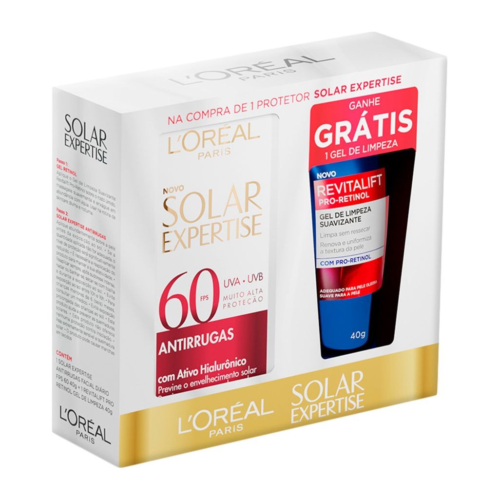 Protetor Solar L'Oréal Paris Solar Expertise Antirrugas FPS 60 40g e Ganhe Revitalift Pro-Retinol Gel de Limpeza Suavizante 40g