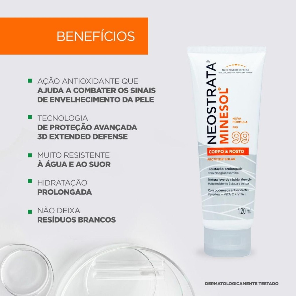 | Protetor Solar Neostrata Minesol Corpo e Rosto Antioxidante FPS99 1... este produto | R$ 179,16 | 19% | 4.9/5 | — |