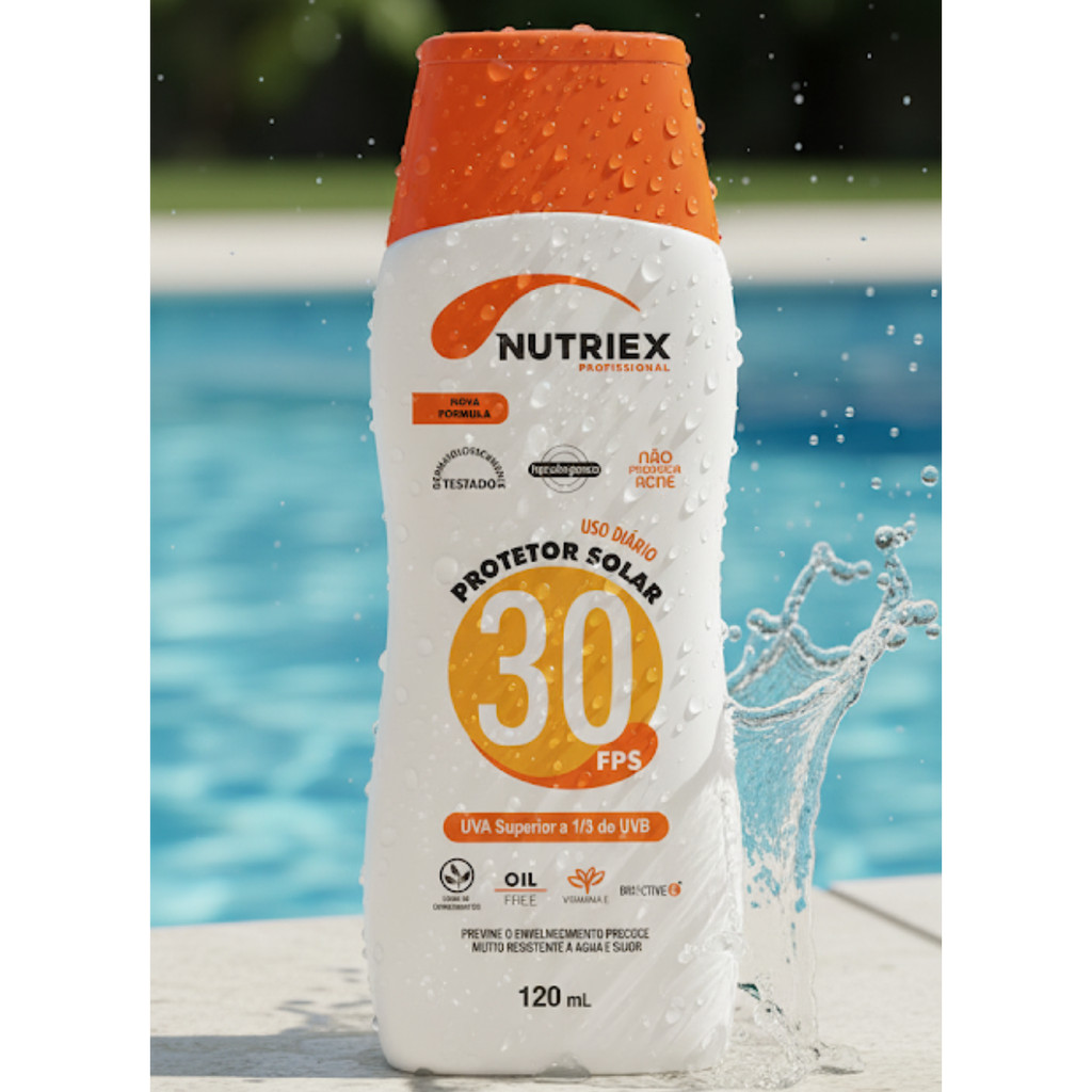 Protetor Solar Nutriex 30FPS 120ML O Protetor Solar Nutriex FPS 30 foi desenvolvido com a exclusiva tecnologia Bioactive E®, que alia nutrição e proteção avançada para a pele. Sua fórmula com Vitamina E ajuda a prevenir o envelhecimento precoce, protegendo contra os danos causados pelos raios UVA e UVB, além de oferecer resistência superior à água e ao suor. Com toque seco, rápida absorção e fragrância suave, o protetor não deixa a pele esbranquiçada, proporciona sensação agradável e é indicado para uso diário em todos os tipos de pele. Dermatologicamente testado, não provoca acne e é ideal tanto para atividades ao ar livre quanto para uso cotidiano. Benefícios: * FPS 30 ? proteção eficaz contra os raios solares * Bioactive E® + Vitamina E ? ação antioxidante que combate o envelhecimento precoce * Hipoalergênico e dermatologicamente testado * Oil Free ? não oleoso, não obstrui os poros * Toque seco e rápida absorção * Fragrância suave e aplicação fácil * Não deixa a pele esbranquiçada * Muito resistente à água e ao suor * Proteção equilibrada: UVA superior a 1/3 de UVB * Indicado para uso diário Modo de Aplicar: Aplique uma camada generosa do protetor solar sobre a pele antes da exposição ao sol. Reaplique sempre que necessário, especialmente após suar intensamente, nadar, se secar com toalha ou durante períodos prolongados de exposição. Para crianças menores de 6 meses, consulte um médico antes do uso. Nuvem de tags: Protetor Solar, Nutriex, Fps 30, Bioactive E, Vitamina E, Toque Seco, Uso Diário, Hipoalergênico, Oil Free, Resistente Água, Resistente Suor, Proteção Uva, Proteção Uvb, Pele Saudável, Anti Envelhecimento, Rápida Absorção, Não Oleoso, Não Provoca Acne.