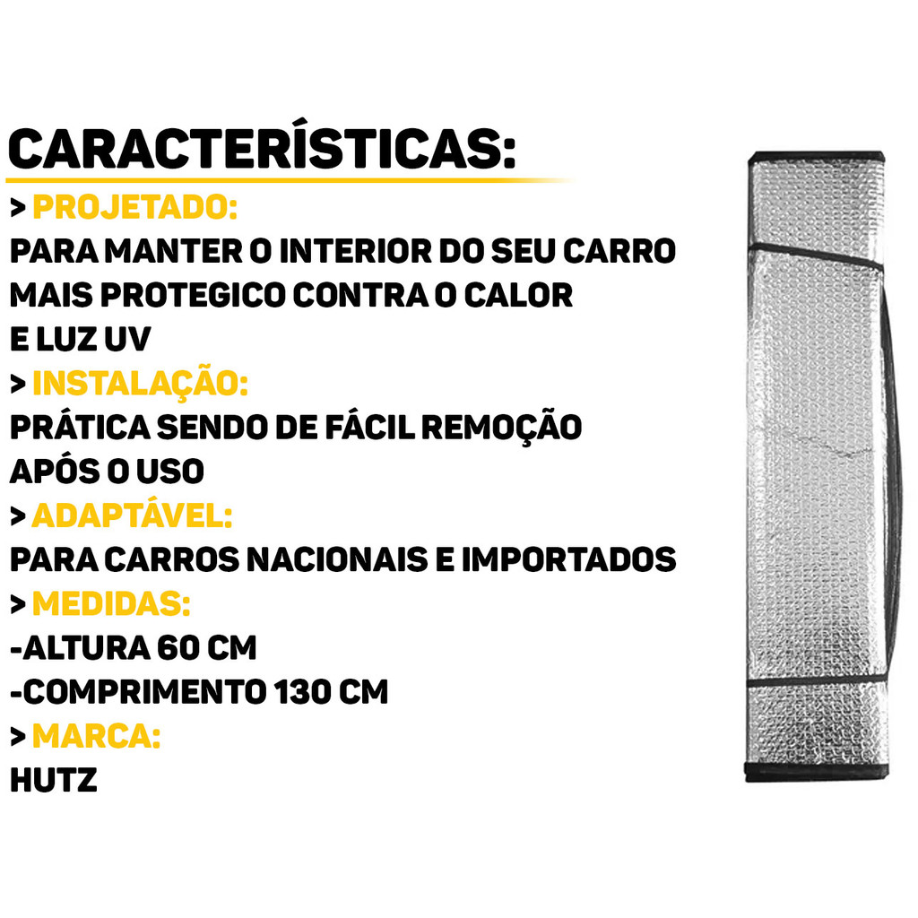 Protetor Solar Para Carros Para-Brisa Quebra Sol Painel Automotivo Janelas Proteção Térmica 60 x 130