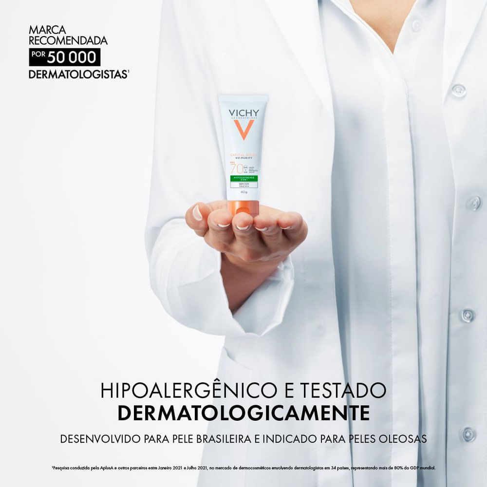 | Protetor Solar Vichy Capital Soleil UV Purify FPS 70 Pele Média 40g este produto | R$ 135,99 | — | 5.0/5 | — |