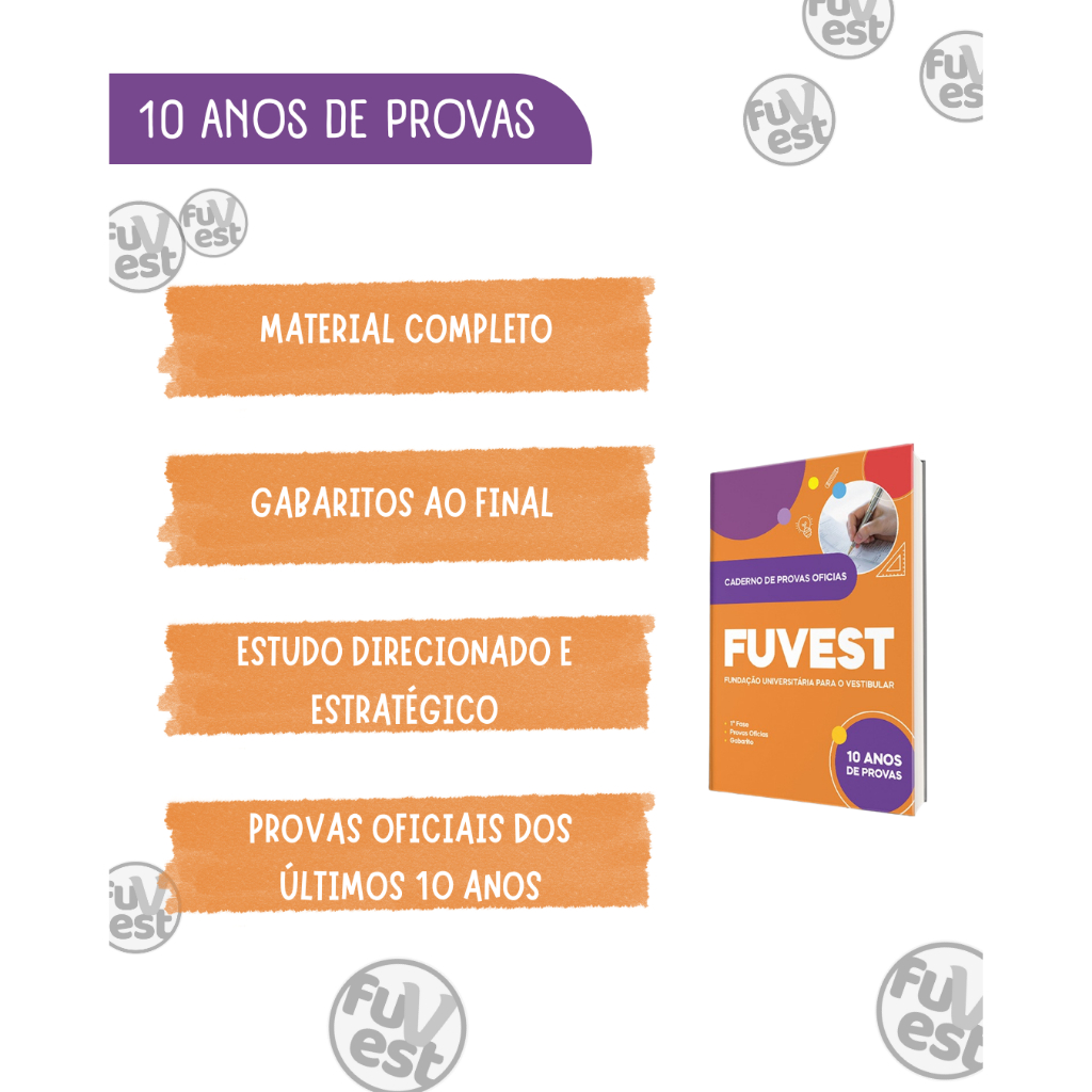Material completo para quem deseja se preparar com eficiência para a FUVEST. Este compilado reúne todas as provas dos últimos 10 anos (2016 a 2025), organizadas por ano, com gabaritos e critérios de correção. Vantagens do material: Familiarize-se com o formato da prova Identifique os temas mais recorrentes Treine dentro do tempo real do exame Aprimore suas estratégias de resolução Ideal para quem busca um estudo direcionado e estratégico para um dos vestibulares mais concorridos do país. Garanta já o seu e intensifique sua preparação para a FUVEST