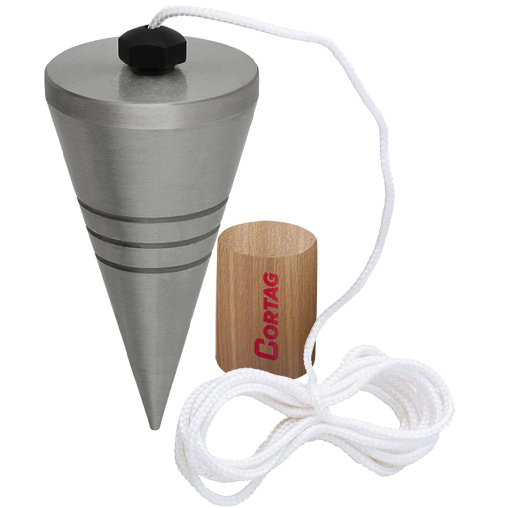 Prumo de Centro 500g Cortag em Aço Carbono e Apoio em Madeira
