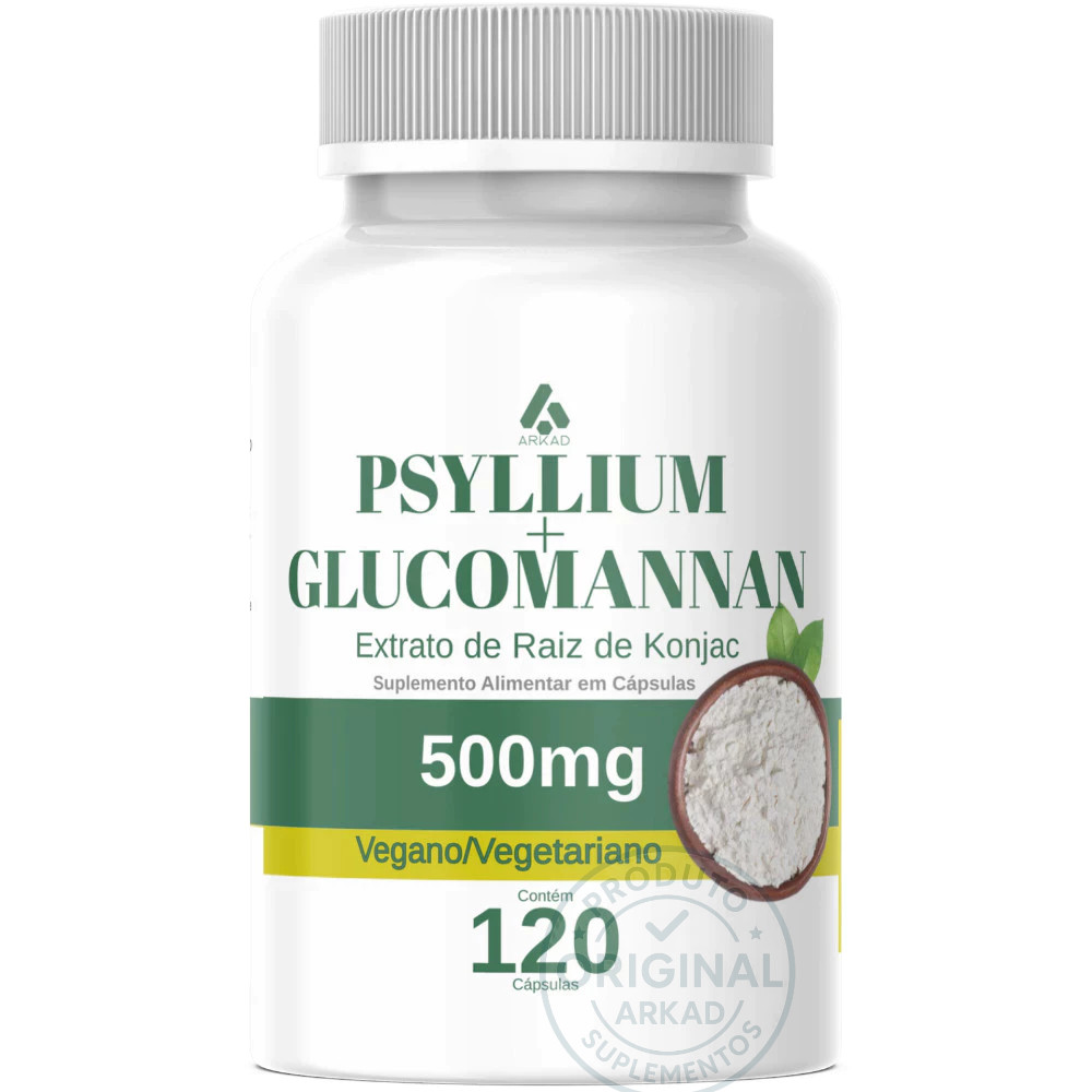 PSYLLIUM 250mg + GLUCOMANNAN 250mg 100% Natural 60 ou 120 Cápsulas - Arkad Suplementos