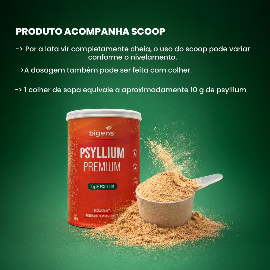 Se você busca mais saciedade ao longo do dia e uma rotina alimentar mais equilibrada, o Psyllium Premium Bigens pode ser um excelente aliado. Cada porção fornece 10 g de psyllium, uma fibra solúvel que, ao entrar em contato com a água, forma um gel natural, contribuindo para a sensação de saciedade dentro de uma alimentação equilibrada. A ingestão adequada de fibras alimentares é fundamental para o bom funcionamento do intestino. O psyllium atua como substrato para bactérias benéficas da microbiota intestinal, auxiliando na manutenção de um ambiente intestinal mais equilibrado, o que está relacionado ao conforto digestivo e ao bem-estar no dia a dia. As fibras solúveis também fazem parte de estratégias alimentares voltadas ao cuidado com a saúde. O consumo regular de psyllium pode auxiliar no controle do colesterol e contribuir para o equilíbrio da resposta glicêmica, ajudando a desacelerar a absorção dos carboidratos e a evitar picos de glicose após as refeições, sempre associado a hábitos saudáveis. Psyllium Premium Bigens é indicado para quem precisa aumentar o consumo de fibras de forma prática, com uma fórmula clean label, vegana, livre de glúten e com apenas um ingrediente.