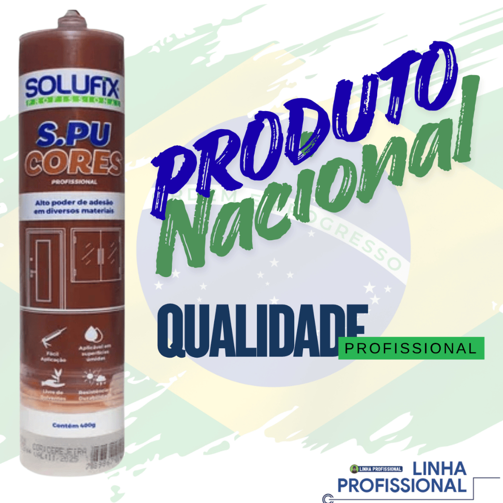 • Cor: Marrom Cerejeira • Equipamento Necessário: Aplicador manual, elétrico ou pneumático ** Importante: Para ser utilizado/aplicado esse produto precisa de um aplicador. Existe o KIT com aplicador para venda aqui, em nossa loja ** Solufix SPU 40R Marrom Cerejeira é um adesivo selante híbrido de Poliuretano modificado com silano (SPUR). Produto versátil e de longa durabilidade, recomendado para uso em diversas aplicações no setor da construção, como em juntas de dilatação, instalação de calhas, rufos e dutos de ventilação, e também no setor industrial, em diversos processos fabris, como, por exemplo, em instalações frigoríficas, implementos rodoviários, vedação em chapas e perfis em caminhões, trens, ônibus, entre outros. Pode ser aplicado em ambientes internos e externos, pois possui excelente resistência UV, à intempéries e ao envelhecimento, podendo inclusive ser aplicado em superfícies úmidas. Após a cura do produto, pode ser lixado e pintado. Aderência: Excelente aderência em concreto, tijolo, pedras naturais e sintéticas, azulejo, cerâmica, madeira, MDF. vidros, PVC, policarbonato, chapas galvanizadas, galvalume, aço, placas de ACM, inox, entre outros. Características: – Fácil extrusão mesmo em baixas temperaturas; – Elástico e Flexível; – Resistente ao intemperismo e ao envelhecimento; – Resistente a raios UV; – Não Corrosivo; – Aceita Pintura depois de curado; – Não escorre; – Livre de Solventes; – Não ataca a pintura; – Não mancha superfícies; – Adere superfícies úmidas; Indicação – Vedação de juntas de baixa dilatação ou estáticas, colagem e fixação. – Trabalhos envolvendo vedação e colagem de materiais lisos e porosos – Confecção / manutenção de Calhas e rufos; – Colagens de Revestimentos, indústria implementos rodoviários e instalações frigoríficas. – Indicado para carrocerias na vedação de chapas e perfis em caminhões, trens, ônibus e carrocerias em geral. – Vedações em aço pré-pintado, aço galvanizado, aço inoxidável e metais não ferrosos. Aplicação: Este produto deve ser aplicado com aplicador manual, elétrico ou pneumático. A superfície deve estar limpa, seca, isenta de pó, gorduras, partículas soltas e outras substâncias que impeçam boa adesão. Deve ser aplicado em linhas verticais para correta ancoragem