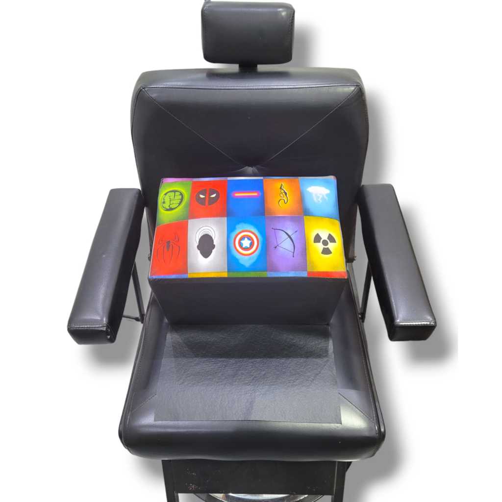 Banco personalizado de elevação para cadeira de barbearia (infantil). Ideal para colocar sobre cadeira e ajustar a altura em que se faz o corte de cabelo da criança. Materiais Courino Espuma Madeira