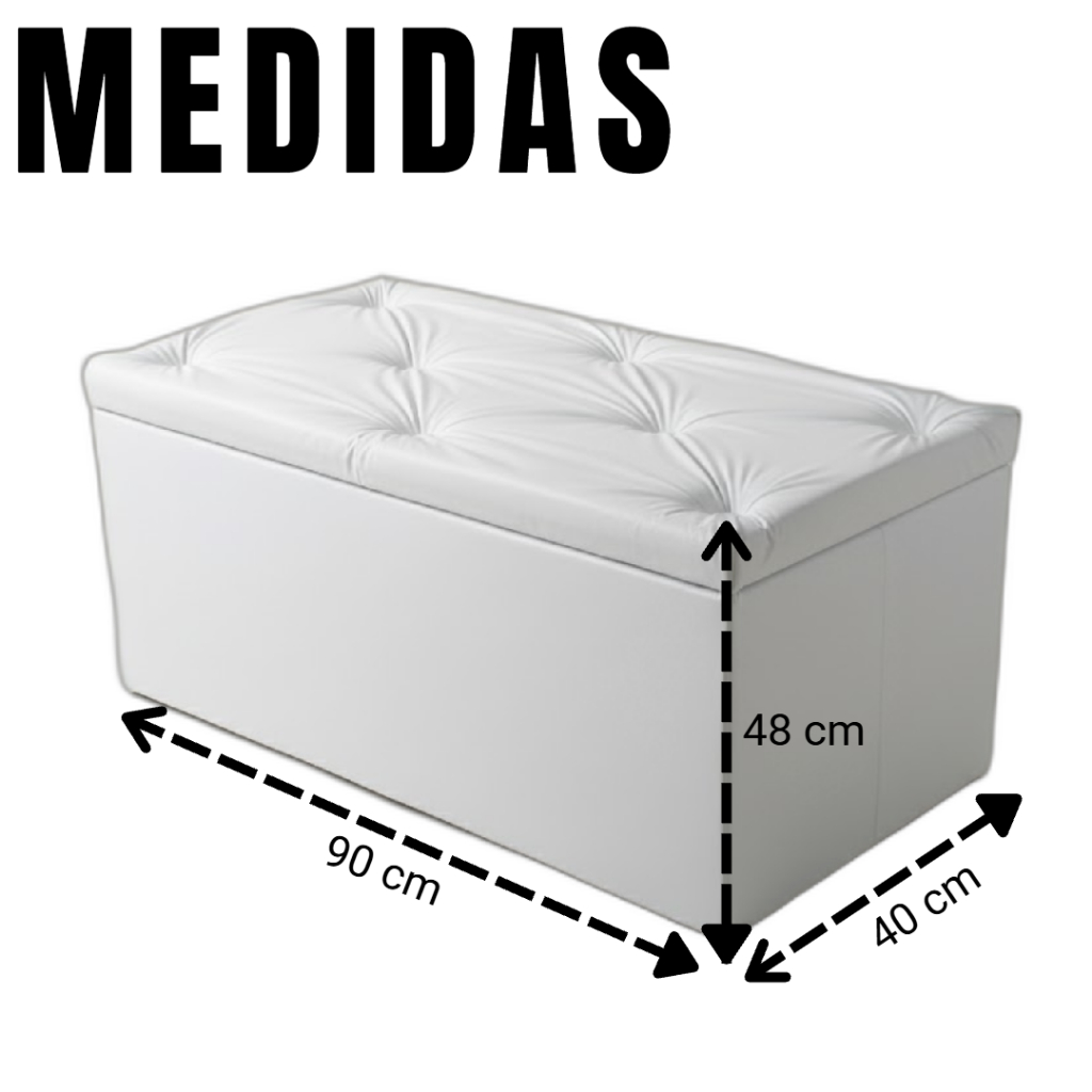 🤍 PUFF BAÚ ORGANIZADOR CORINO BRANCO - 90x40x48 cm Sofisticação, Luminosidade e Organização para o Seu Lar! Dê um toque de elegância e funcionalidade ao seu ambiente com o nosso Puff Baú Organizador Retangular na cor Branca, revestido em resistente Corino. O acabamento em capitonê adiciona um charme clássico, e a cor branca é perfeita para ampliar visualmente o espaço e trazer uma sensação de limpeza e modernidade a salas, quartos ou closets. O Corino é o aliado ideal para manter o branco sempre impecável pela sua facilidade de limpeza. ✨ Características e Vantagens Revestimento em Corino: Material de alta durabilidade e impermeável. Por ser fácil de limpar, permite que a cor branca se mantenha conservada por muito mais tempo. Cor Clean (Branco): Traz luminosidade e neutralidade, combinando com qualquer paleta de cores e estilos de decoração. Multifuncional 3 em 1: Use como assento extra, apoio para os pés e um baú generoso para armazenamento. Amplo Espaço Interno: Perfeito para organizar mantas, travesseiros, livros ou calçados, eliminando a bagunça visual do cômodo. Base Reta (Sem Pés): Oferece estabilidade total e um design minimalista que se integra perfeitamente ao piso. Design Capitonê: O clássico acabamento com botões que eleva o móvel ao status de peça decorativa premium. 📏 Medidas (Dimensões Externas) DimensãoMedidaComprimento90 cmLargura (Profundidade)40 cmAltura48 cm