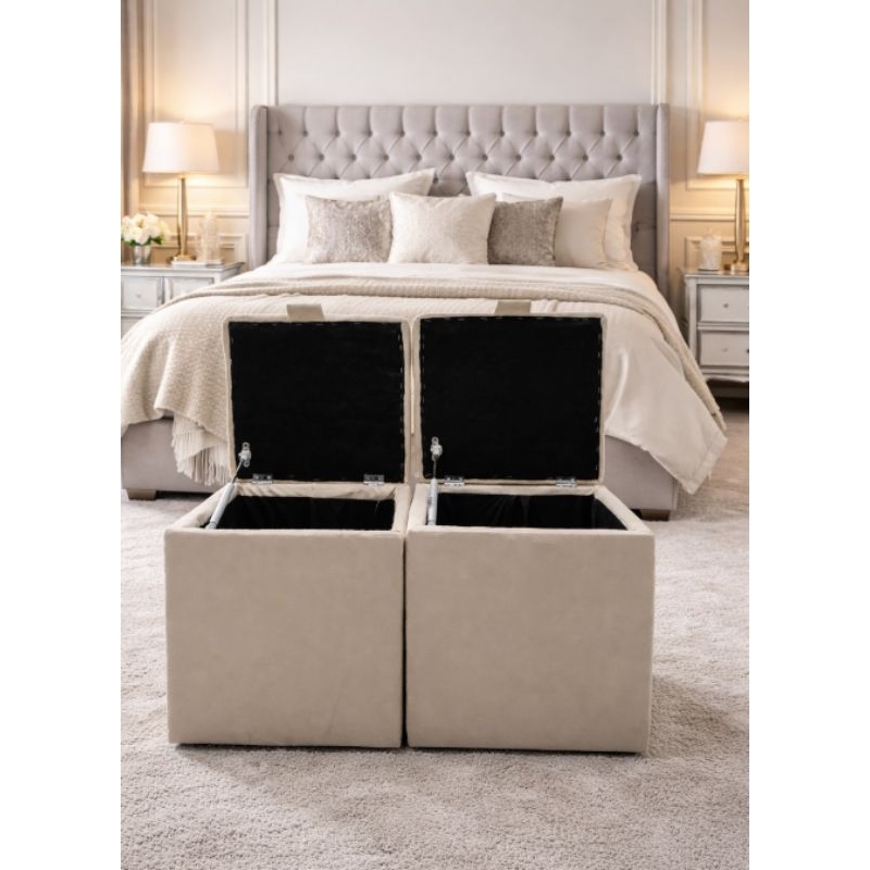 puff baú Suede liso com pistão a gás largura 35 comprimento 35 Altura 42