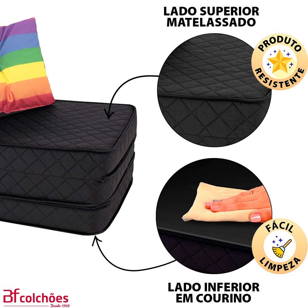 Puff Colchonete Dobrável / Sofá 3 em 1 Espuma + Travesseiro Casal BF Colchões