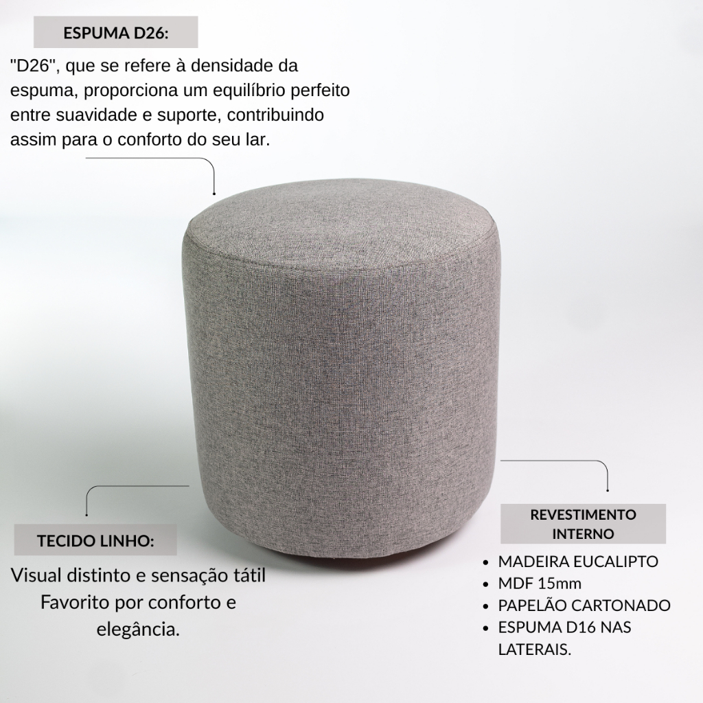Puff Duna Decorativo Organico Puffe Redondo Tecido Linho