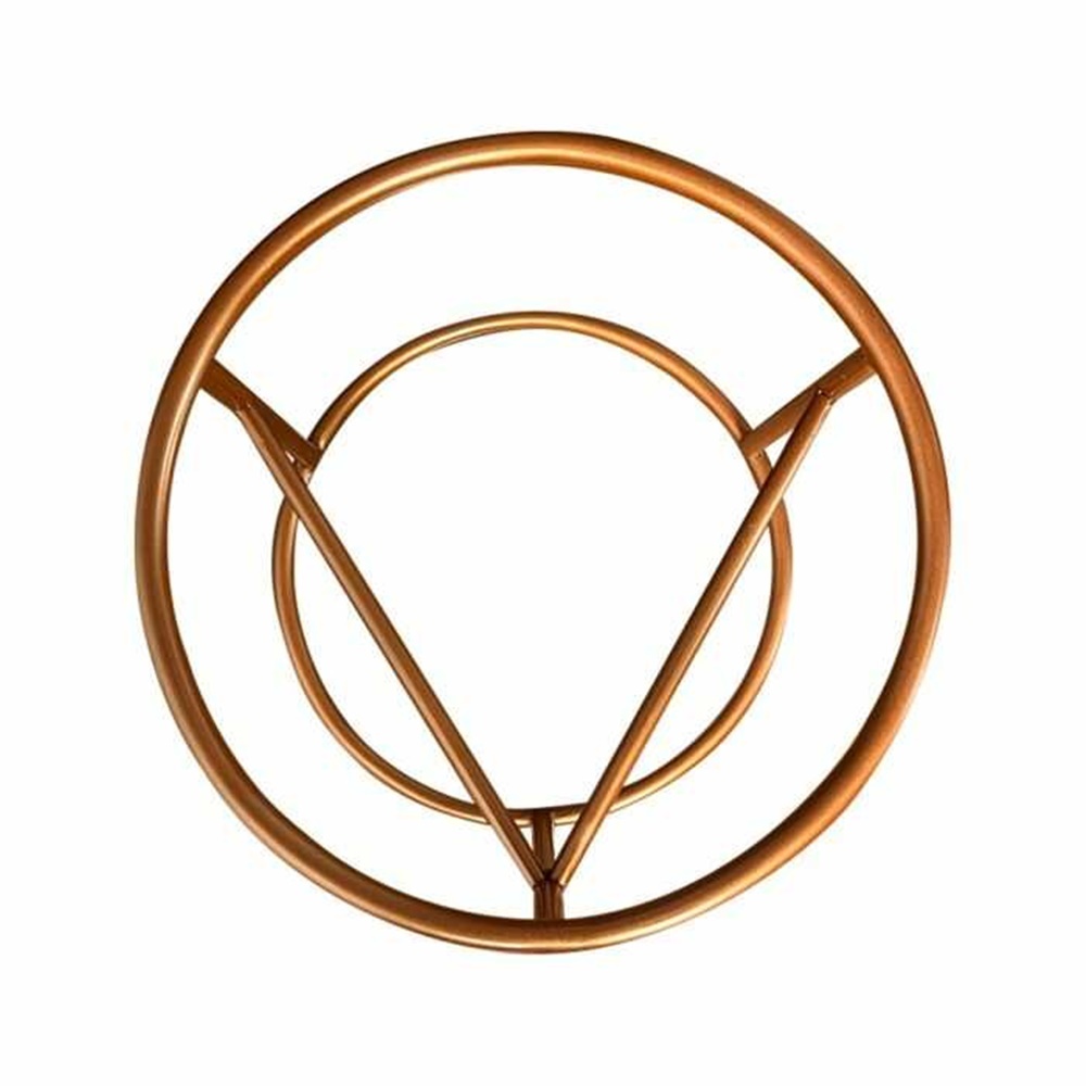Puff Iron Argola Ferro Cobre Metalizado Banqueta Em Linho Bege Couro Caramelo