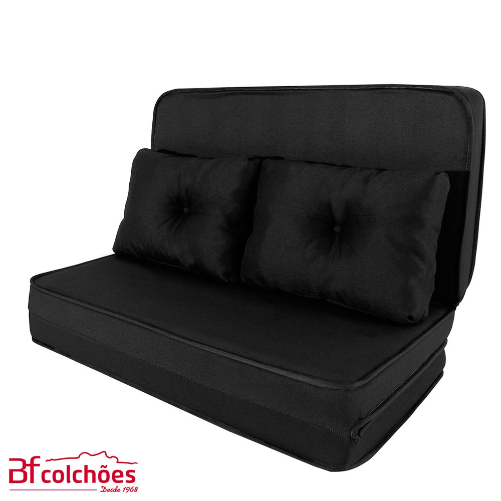 Puff Multiuso 3 Em 1 + 2 Travesseiro Jacquard Preto Liso Casal BF Colchões