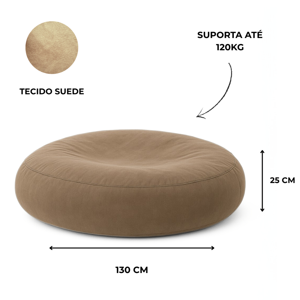 *COMPRAR 1 PUFF POR PEDIDO* Características: Enchimento: 350L Material: Suede Dimensões: Altura: 25 cm Largura: 130 cm Detalhes: Zíper na base para enchimento, costura dupla reforçada. Fabricação: Própria, garantindo qualidade e atenção aos detalhes. Descubra o puff redondo gigante em Suede, a escolha perfeita para transformar seus momentos de relaxamento em experiências únicas. Com um design moderno e ergonômico, ele se molda ao corpo, proporcionando conforto excepcional enquanto você descansa ou reúne amigos. Fabricado com costura reforçada em linha de nylon, garante um acabamento impecável, combinando segurança e estética sofisticada. Confeccionado em suede, o puff mantém sua beleza , mesmo com o uso diário. Seu diferencial fica por conta do zíper discreto na base. Recomendações: Tecido Suede: -Passe o aspirador de pó com um bocal de escova macia sobre o suede semanalmente para remover poeira e partículas soltas. -Mantenha longe de luz solar direta, pois isso pode desbotas a cor ao longo do tempo. -Limpe manchas imediatamente com um pano limpo e seco, se a mancha persistir use um produto de limpeza de suede específico e siga as intruções do fabricante. -De tempos em tempos, contrate um profissional para fazer uma limpeza profunda e tratamento de proteção em suede Fácil Manutenção Incluímos o enchimento para sua comodidade, mas é importante lembrar que, com o tempo, todo Puff pode precisar de ajustes. Para isso, basta abrir o zíper na base e adicionar flocos de espuma ou isopor para manter o conforto como novo. Dúvidas frequentes: Vem com enchimento? Sim, nossos puffs vão cheios com 350L de flocos de isopor. Quantos quilos cada puff tem? Nossos puffs possuem em média 3kg com enchimento. Quantos quilos suporta? Até 120kg. Este puff precisa estar encostado na parede? Não, ele pode ser usado em diversos ambientes e em diversas configurações. Pode usar na áre Externa? Evite água. E exposição prolongada ao sol, pois tecido em suede não são resistentes ao calor. Garanta o Seu Puff Redondo Gigante Agora Mesmo!