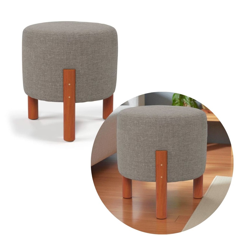 Puff Redondo Luxo Apolo com Pés em Madeira Maciça