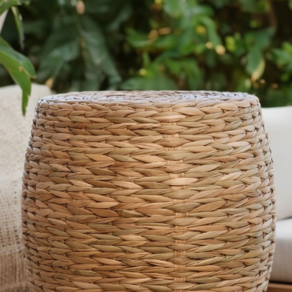 Puff Redondo Natural Rústico De Palha De Taboa