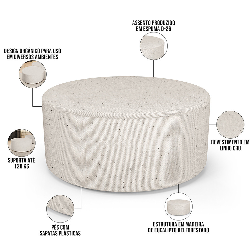 Puff Redondo Orgânico para Living 90cm Lola W01 Linho Cru - Lyam Decor