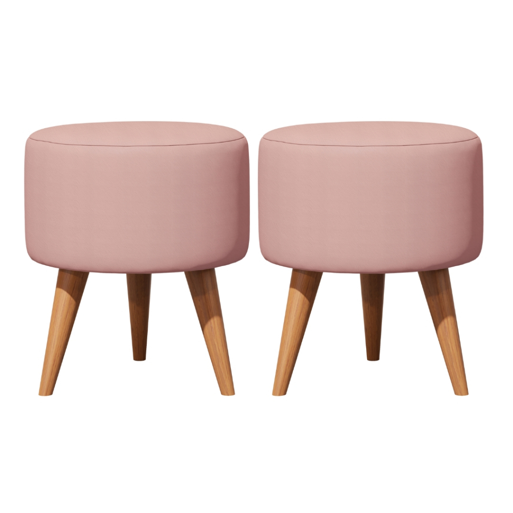 Puff Rose Redondo Pé Palito Kit E Unidades Assento Estofado Apoio Para os Pés Rosa