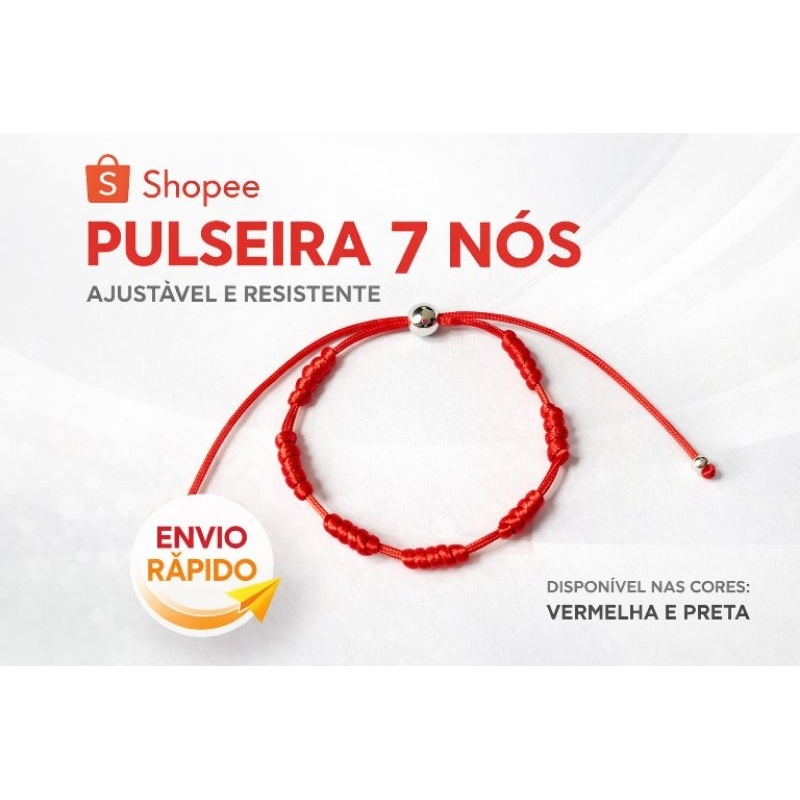 Pulseira 7 Nós Vermelha ou Preta Kabbalah Amuleto de Proteção Contra Mal Olhado Inveja Criança e Adulto Regulável