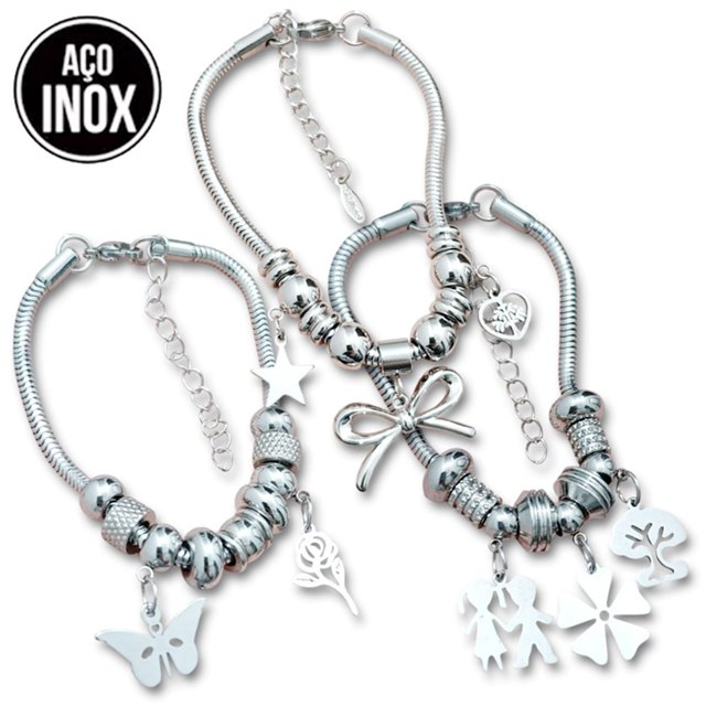 Pulseira Adulto/Infantil 17 ao 24 Berloques Modelo Novo Ajustável Não Escurece Aço Garantia