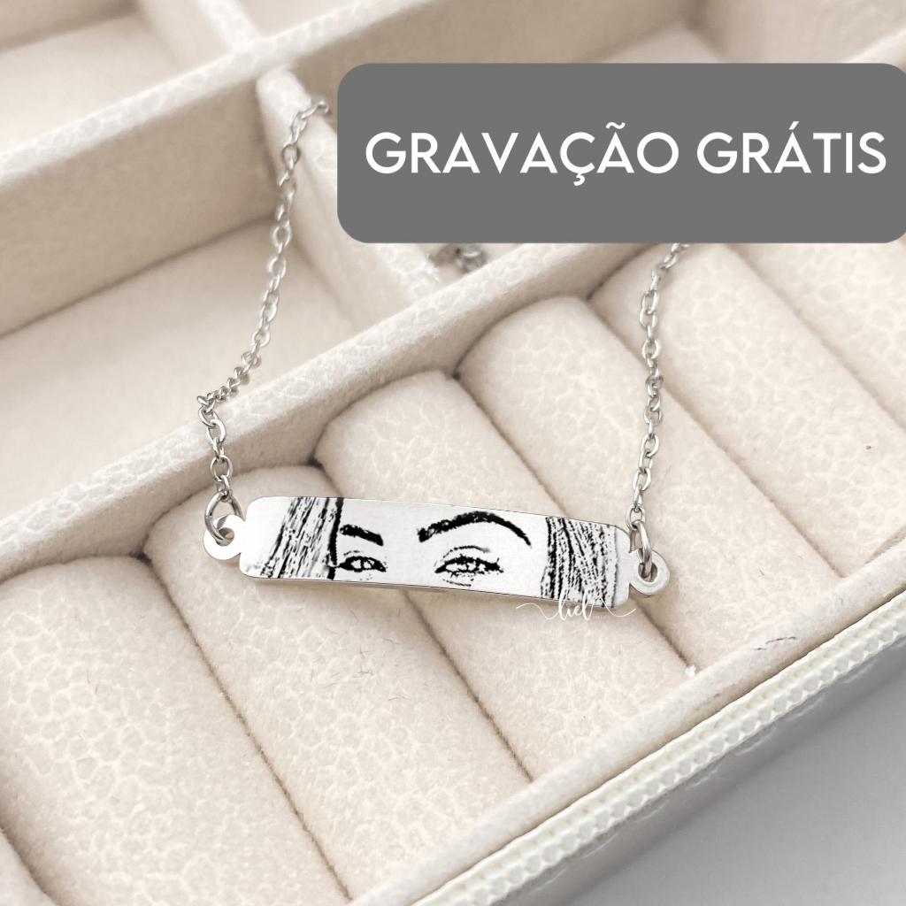 Pulseira Adulto Prata Plaquinha Personalizada Gravação Nome Frase Música Foto Casal Amigas Presente
