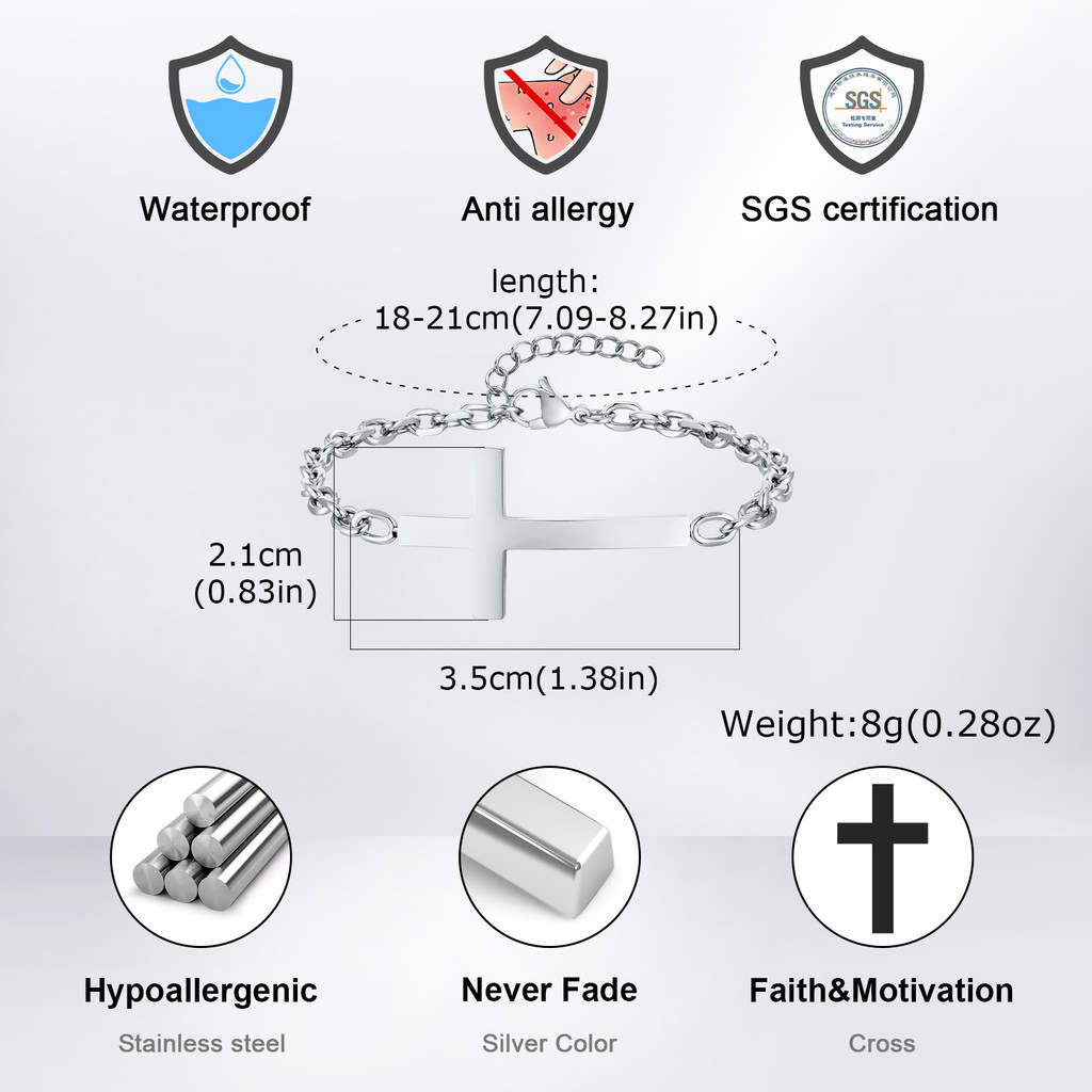 Pulseira Ajustável Vnox Fashion Com Cruz Para Homens , Mulheres E Meninas , Antialérgica De Aço Inoxidável , Presente De