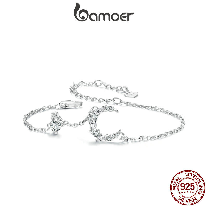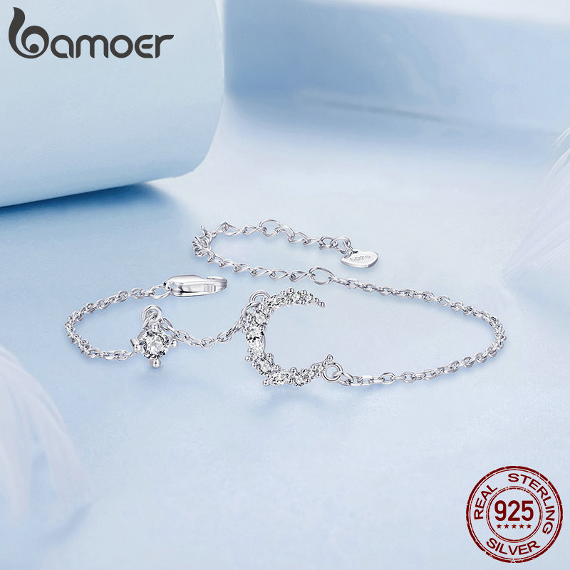 Pulseira Bamoer 925 Sterling Sliver Bracelet Delicada Luz Da Lua Ocasião Diária Jóias Presentes Para Mulheres