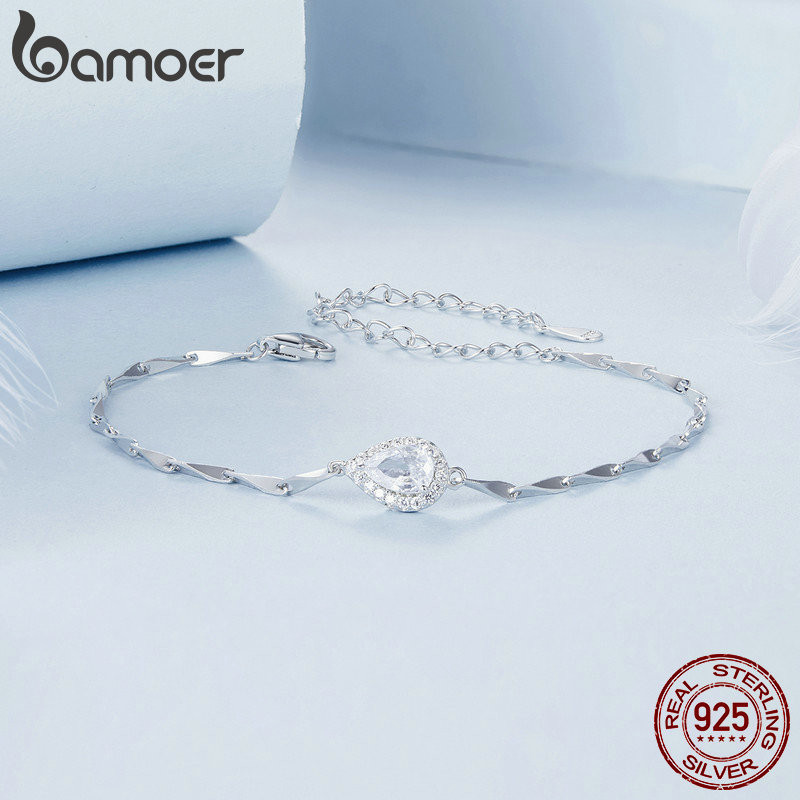 Pulseira Bamoer 925 Sterling Sliver De Fita Cintilante Jóias Com Gotas Cintilantes Para Mulheres