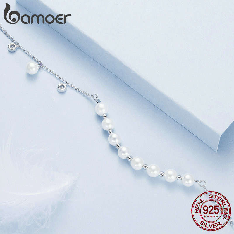 Pulseira Bamoer 925 Sterling Sliver Pearl Tassel Jóias Presentes Para Mulheres