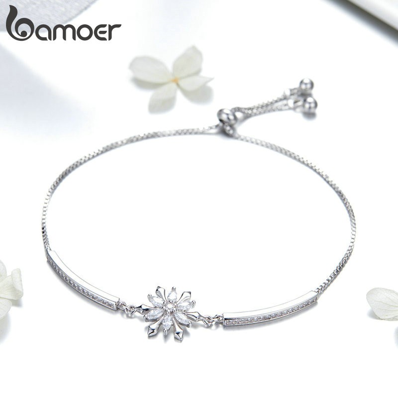 Pulseira Bamoer De Floco De Neve Com Zircônia Cúbica Joias Ajustáveis Para Presente Feminino