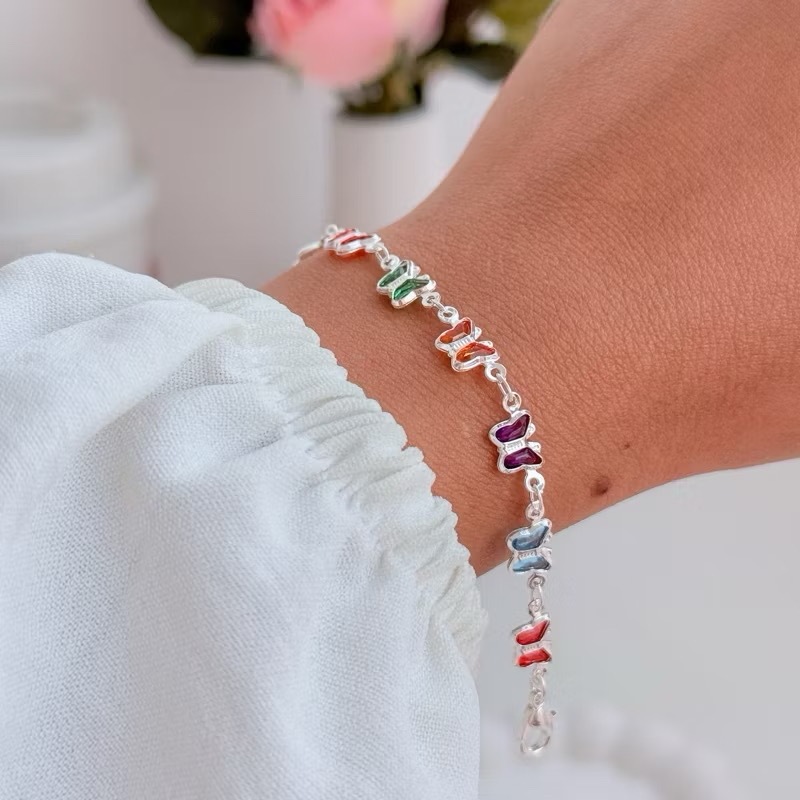 Pulseira borboleta colorida Folheado Danhado A Prata 925
