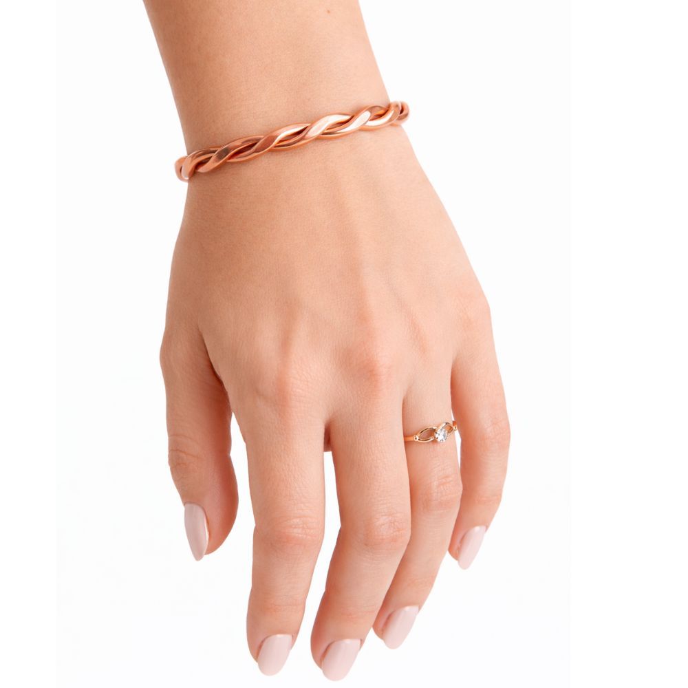 Pulseira Bracelete de Cobre Puro Trançada Ajustável