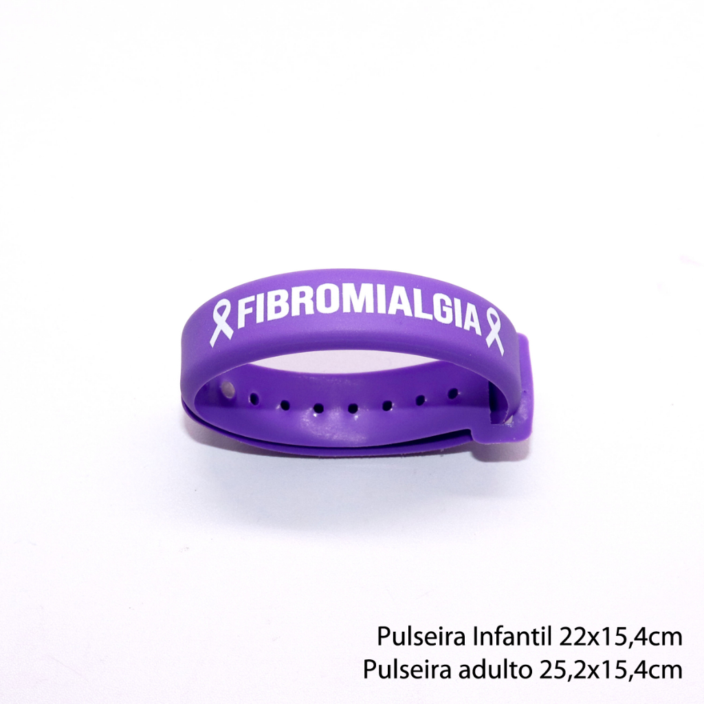 PULSEIRA EMBORRACHADA DE IDENTIFICAÇÃO DA FIBROMIALGIA PRODUTO ATÓXICO, LIVRE DE METAIS PESADOS E FTALATOS.